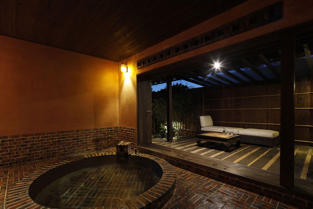湯の川温泉は塩化物泉の保湿効果が高く、さらに草菴は全ての浴槽がかけ流しであるため、通常の上がり湯(真水で流すこと)は必要ありません。