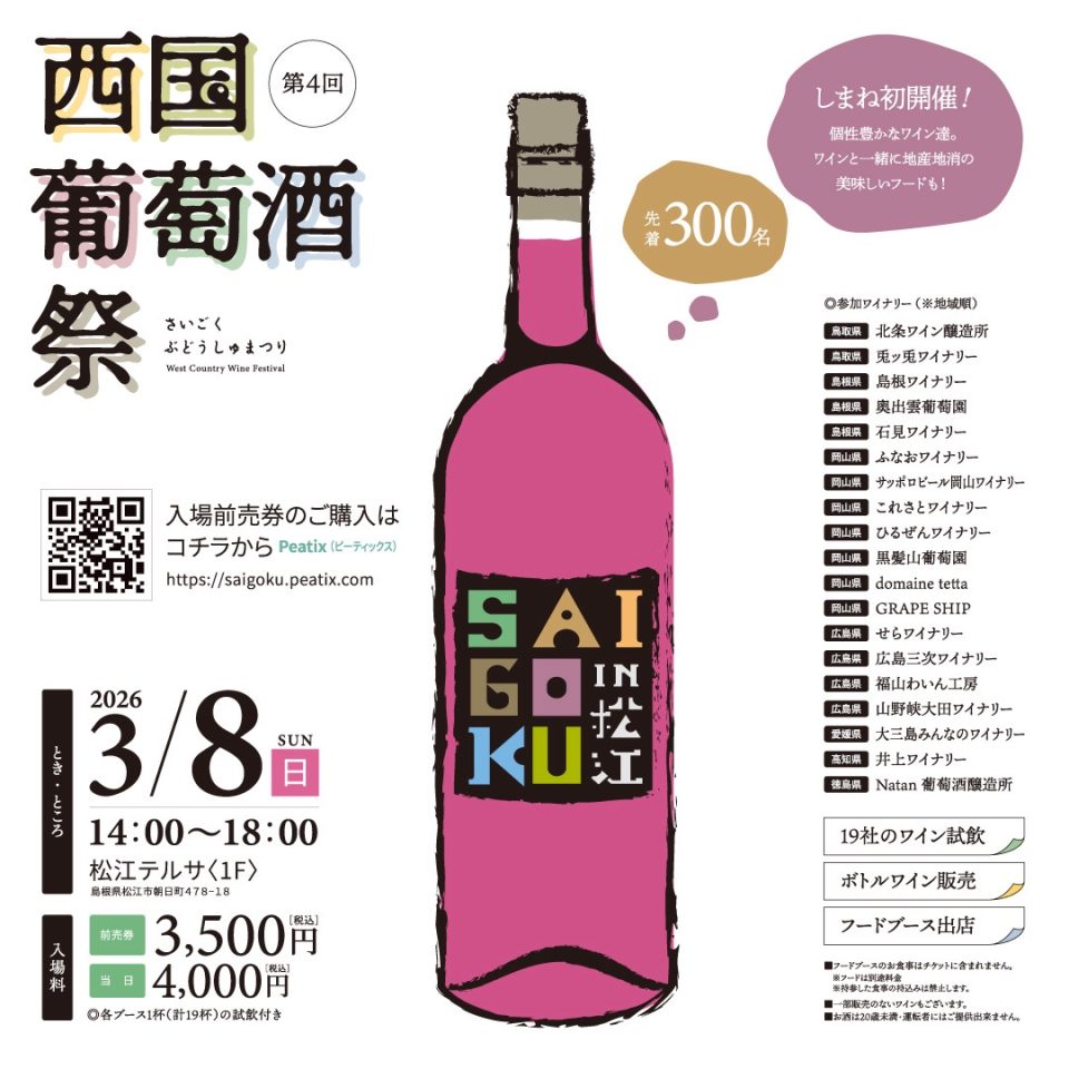 今回は、3月8日(日)に島根県松江市の松江テルサにて開催されました「西国葡萄酒祭(さいごくぶどうしゅまつり)2026」に、草菴ソムリエの内田洋平と共に参加してまいりましたので、そのレポートをお届けいたします。